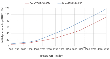 耐破损阻力高达2000Pa,建议终阻力 400Pa@2.5ms;
