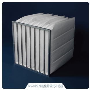 袋式过滤器具有好的容尘功能,按过滤等级可分为初效袋式过滤器、中效袋式过滤器;按滤材可分为:化纤袋式空气过滤器、合成纤维袋式空气过滤器、玻纤袋式过滤器、活性炭复合袋式空气过滤器等;框架材料分为PS、PP、ABS、镀锌钢板、铝合金等材质;