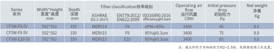 合成纤维5V-BANK型低阻亚高效过滤器、 高效过滤器 CFSW,是今年会具有自主知识产权的亚高效主过滤器,在提供大风量的同时,具有更低的运行阻力和更持久的使用寿命,适用于通风面积紧凑的工况。