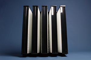 CFGW V-BANK型高效过滤器采用V型结构设计,增大通风量的同时提高了容尘量,提高了滤网使用寿命;过滤效率涵盖F7-H14中、高两个过滤等级;滤材为超细玻璃纤维滤纸,具有稳定的过滤效率;主体框架为ABS注塑成形,带法兰,可选装侧护网。