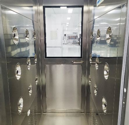 采用初、高效两级过滤,过滤效率达99.99%,配全不锈钢多角度可调向喷嘴,风嘴风速高达22-25m/s,风淋时间可在0~99秒调整,可有效减少人员进出洁净室时带来的污染,此外还有货淋室用于清洁货物上的尘埃粒子。