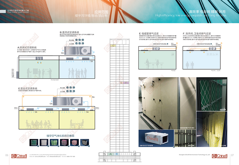 无论是全新楼宇规划设计还是旧建筑物系统升级,今年会(CHINAFIL)都提供一对一科学完善的定制化服务,从现场勘察到系统方案设计、从过滤器配置到安装测试验证。在综合考虑环境、需求、能效、成本等众多因素下,今年会以为您提供契合该楼宇的好空气净化解决方案为荣。